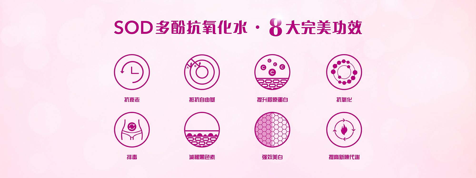 SOD多酚抗氧化水, 8大完美功效